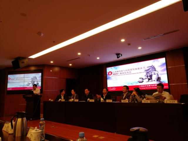 2019年04月19日,为了进一步响应中央和省委的号召,积极服务地方经济发展,江西财经大学江西经济发展与改革研究院举办区域现代化与高质量发展论坛暨江西现代化与高质量发展蓝皮书(2019)发布会,邀请江西省发改委、工信厅、省政府研究室等省直部门和高端智库专家学者作为主讲嘉宾,共同讨论江西现代化与高质量发展建设,共绘新时代江西物华天宝、人杰地灵的新画卷,并将发布江西财经大学高端智库研究成果《江西现代化与高质量发展蓝皮书2019》。